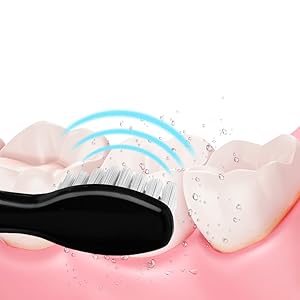 【圧倒的な除去力】ブラシの毛先が毎分3500回の微振動で歯の表面に付着した歯垢、汚れを強力に清掃します。手磨きより100倍の歯垢を除去できます。2週間をかかるだけ、健康的な口内環境をサポートします。