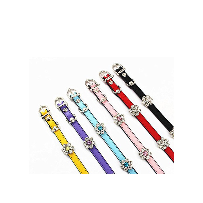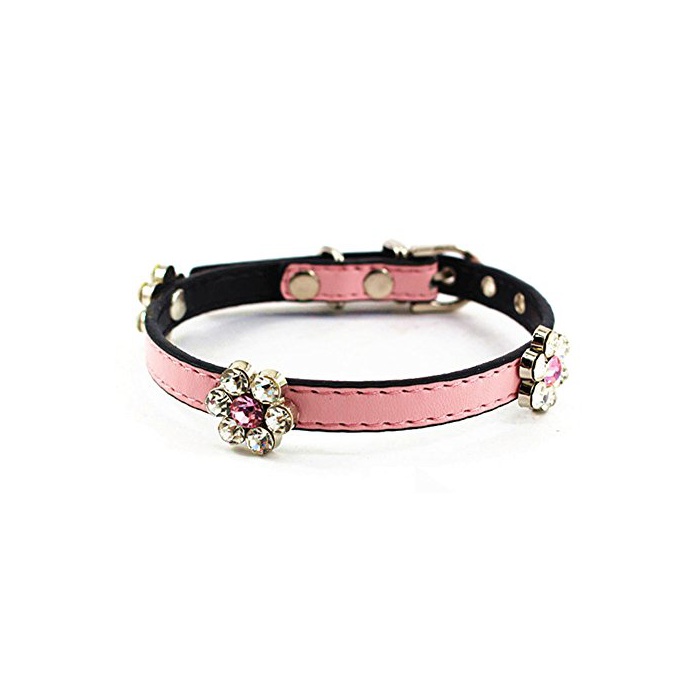 목걸이 표면에 멋쟁이 꽃 모양 스톤 악세사리가 붙은 디자인에,반짝반짝 해 매우 깨끗함 없어 비와.복잡해 고급감 있고, 귀여운 고양이/개 겸용 목걸이입니다.금속제 버클 데코레이션,사용해 편리뿐만 아니라,내구성이 어느(있는) 고양이/개 용목걸이.조절 #이 보기 편리하고, 장착하기 쉽습니다.조절 가능하고,사용해 편리한 애완동물 목걸이!