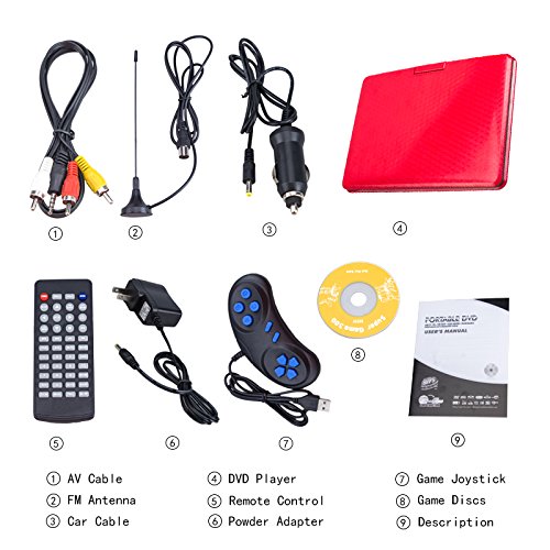 10.1 Inch NS-1129 DVD Player Car DVD Player EVD VCD TFT Screen Portable DVD and recording function from AVI/CD/MP3 to USB/SD, Red