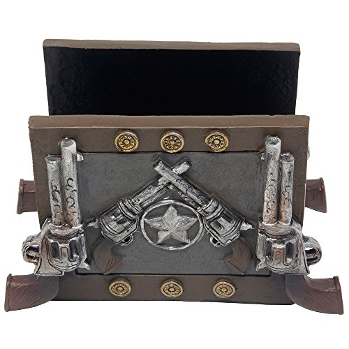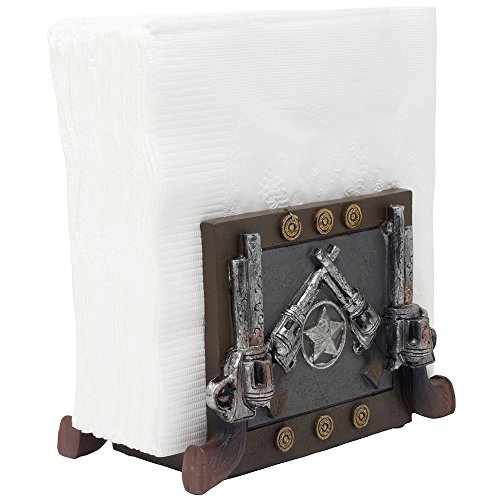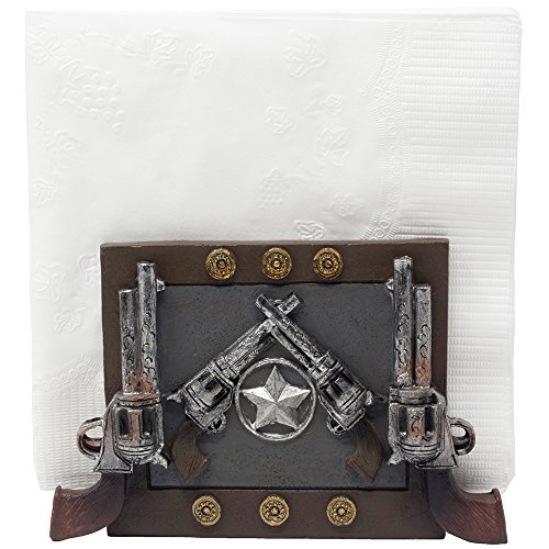 Decorative Country Western Napkin Holder with Six Shooter Pistols and Texas Star for Wild West Kitchen Countertop Or Dining Room Table Decor As Gun Gifts for Cowboys