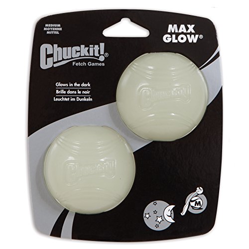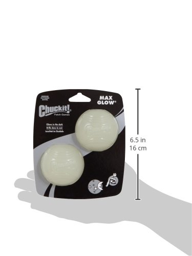 -. Binding : Misc. -. Brand : Chuck It -. Color : White -. EAN : 0029695330674 -. Feature : Allows the game to keep going when the sun goes down / Recharge in seconds with a bright flashlight / Fast charging MAX GLOW rubber helps you and your dog track the ball in low light / Launcher compatible / Made with a safe, high quality photo luminescent material that is both chemically and biologically inert -. Label : Doskocil -. Manufacturer : Doskocil -. Model : 33067 -. MPN : 33067 -. PackageQuantity : 1 -. PartNumber : 33067 -. ProductGroup : Pet Products -. ProductTypeName : PET_SUPPLIES -. Publisher : Doskocil -. Size : Medium -. Studio : Doskocil -. Title : CHUCKIT Max Glow Balls for Pets (2 Pack), Medium, White -. UPC : 029695330674