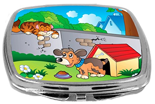 Rikki Knight Compact Mirror, Cute Dog In Kennel with Cat Illustration