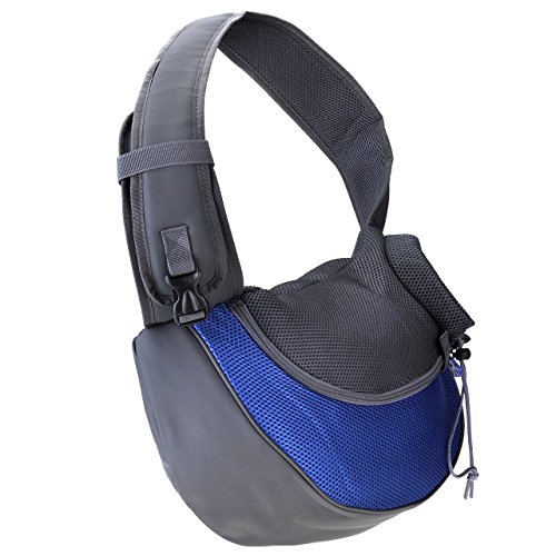 -. Feature : Two size:S/L, Various colors:Blue/Rose Red/Yellow/Green. / Made of soft mesh + leather, skin-friendly and comfortable for beloved pets / Hands-free sling-style carrier loops over shoulder while the pet rests in the pouch on the opposite hip to keep pet secure and comfortable / Able to hold the whole pet and just keep the head outside, making your pets enjoy sunshine and fresh air / Adding fun and providing a safety cozy harbor for your pet. Just show your "Love" to her boldly. Ideal for everyday walk, travel outside, taking part in pet party or weekend adventure, etc.