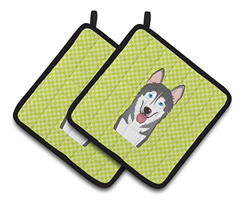 Caroline's Treasures Checkerboard Lime green Alaskan Malamute Pair of Pot Holders BB1280PTHD, 7.5HX7.5W, Multicolor