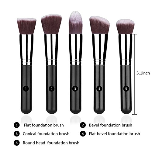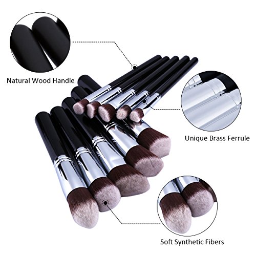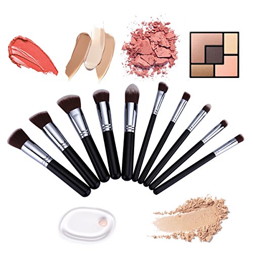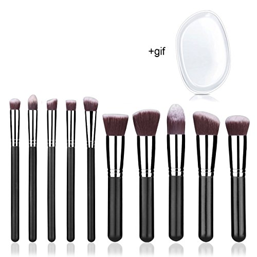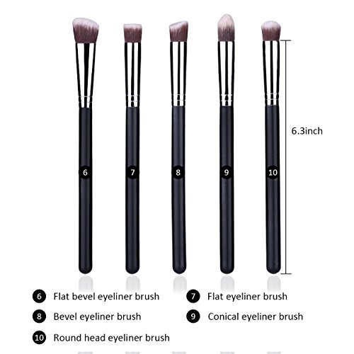 - PROFESSIONAL BRUSHES SET: 10 Pcs makeup brushes, face brush shape: Taper type, Round, Round Angled, Flat Foundation, Flat Angled; Eye brush shape: Taper, Round, Flat, Flat Angled, Angled. To apply foundation, contour, buffing, highlight