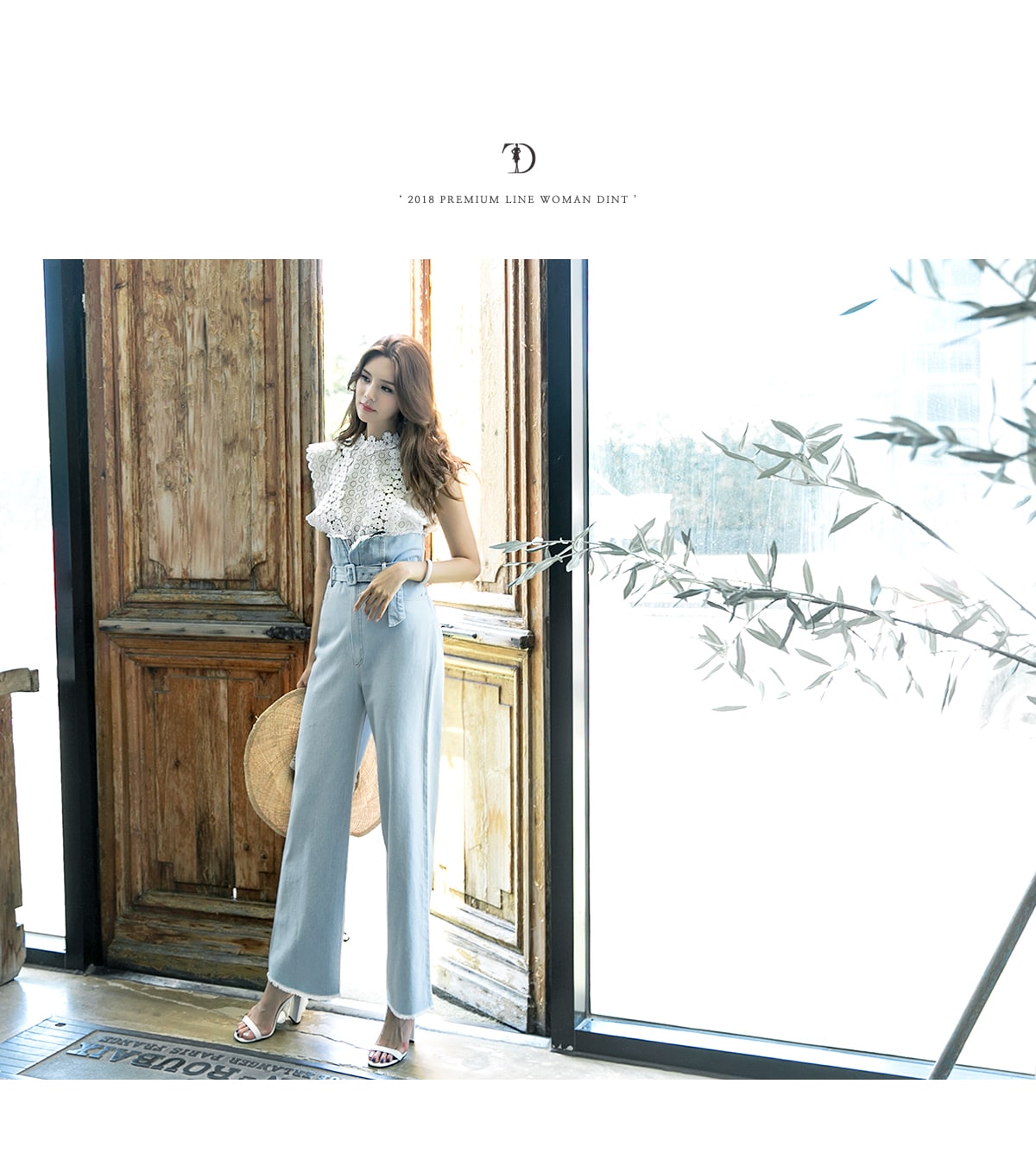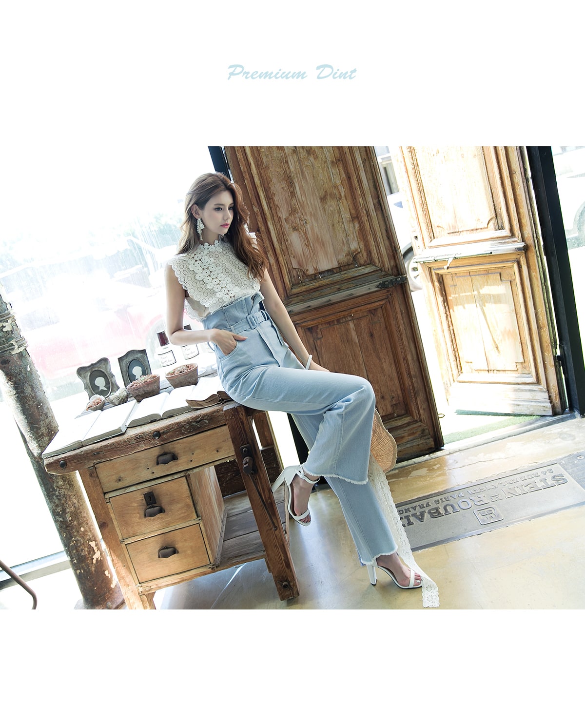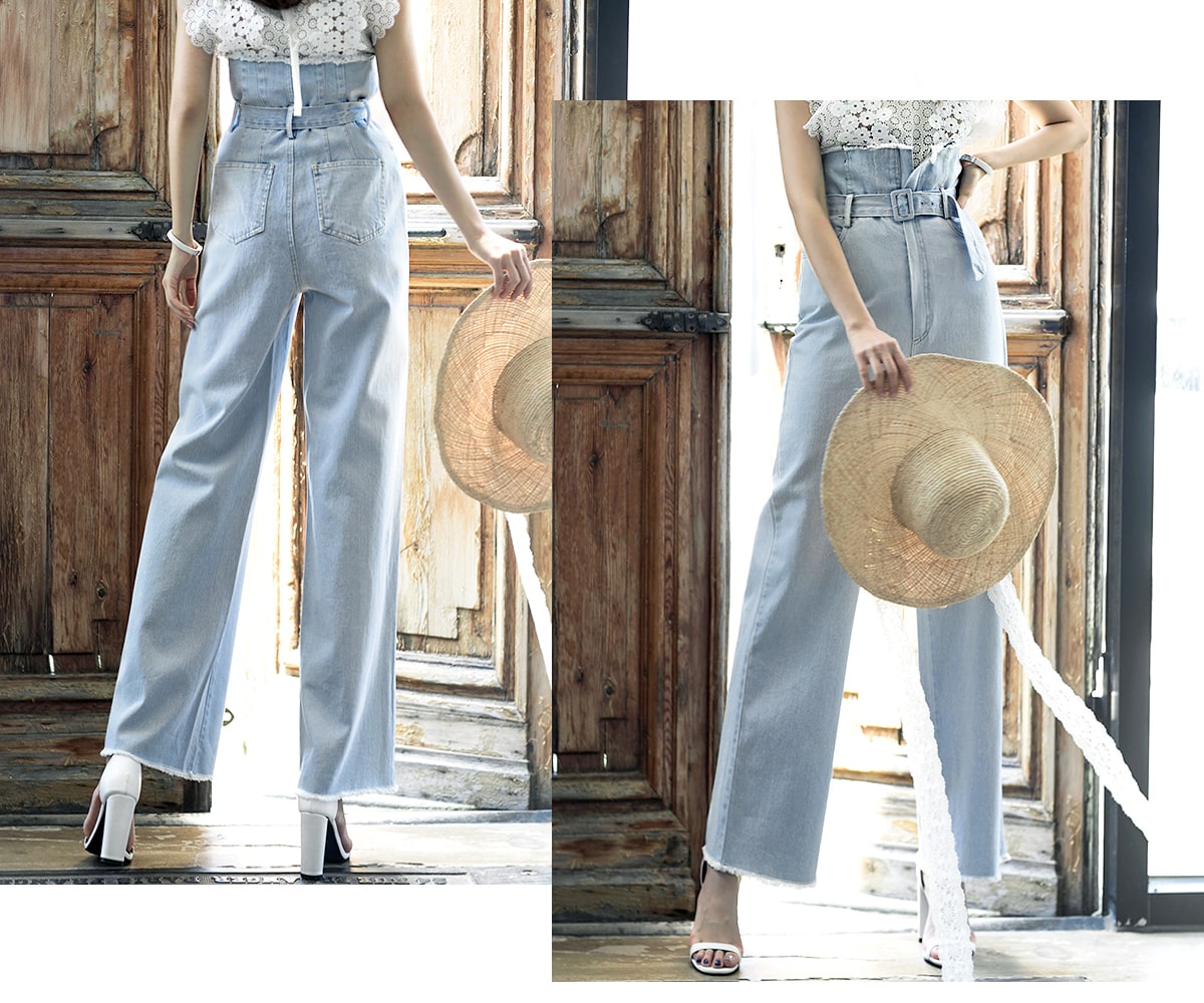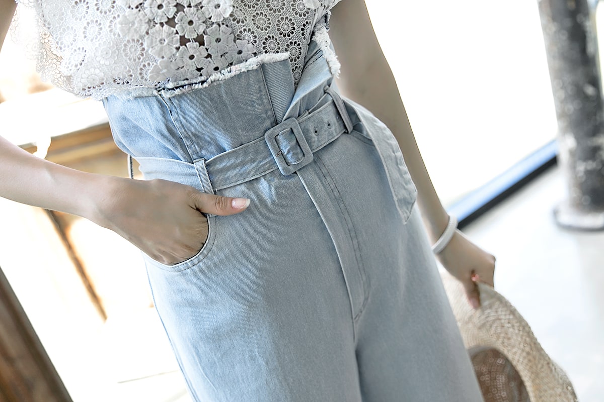 PJ338 하이라인 오버롱 데님 팬츠(벨트set) Light Blue