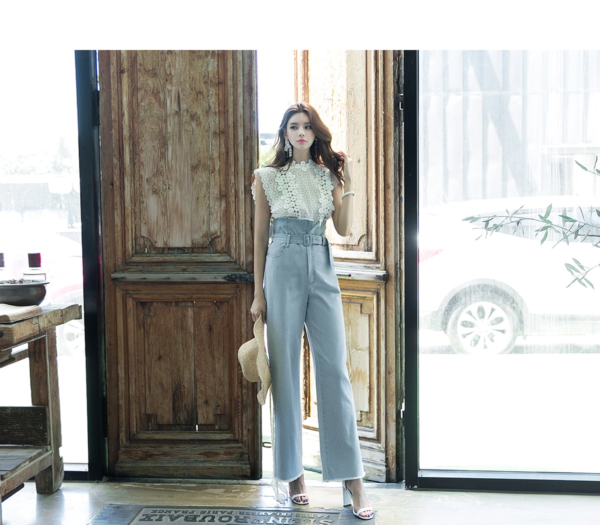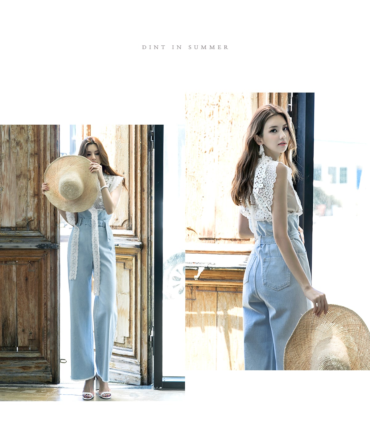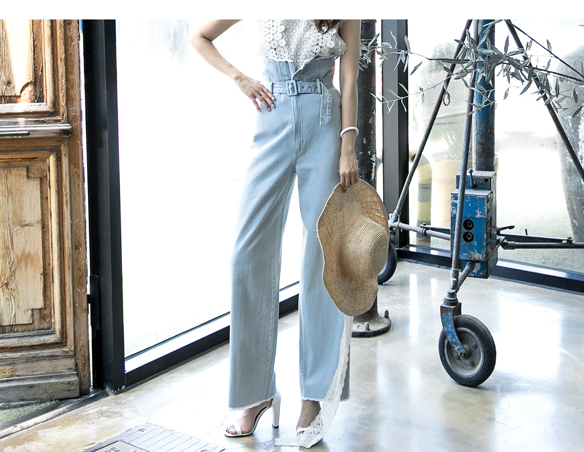 PJ338 하이라인 오버롱 데님 팬츠(벨트set) Light Blue