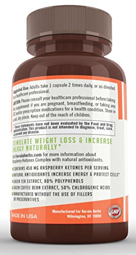 Kerala Herbs Raspberry Ketones Complex For Weight Loss and Natural Energy 120 capsules