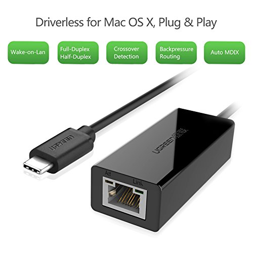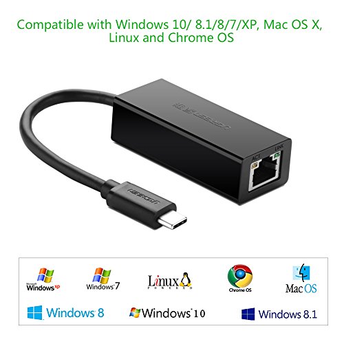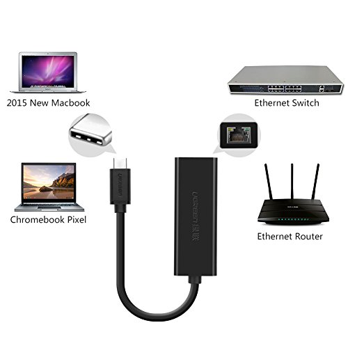 Ugreen PID: 30287 USB-C 10/100 Mbps ethernet adapter connects your new 12inch Macbook, Google Chromobook Pixel, Lenovo Yoga 900 13", and ASUS Zen AiO and other PCs with USB-C to a router, modem, or network switch to bring a wired Ethernet to a wireless-only system through a USB -C port for file transferring, video conferencing, gaming, and HD video streaming.
