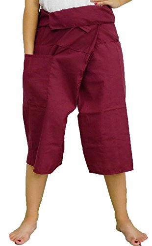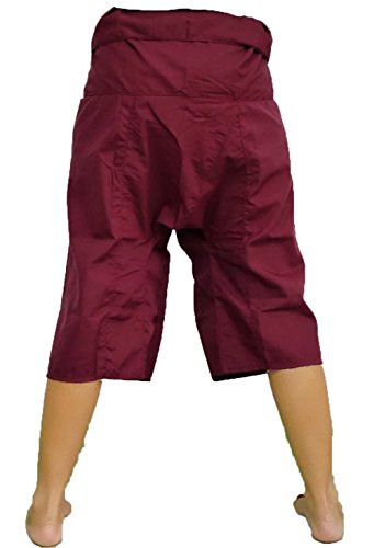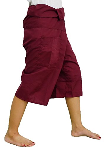 DARK RED TORAY - 3/4 MEN WOMEN THAI FISHERMAN PANTS YOGA TROUSERS BY THAI SPICY FREE SIZE
