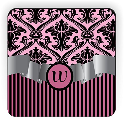 Rikki Knight Letter "W" Initial Light Pink Damask and Stripes Monogrammed Design Square Fridge Magnet