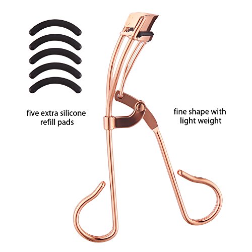 LOAVER Eyelash Curlers With Refill Pad Stainless Steel Compact Travel Eyelash Curler Rose Gold Makeup Accessory for Women Girls