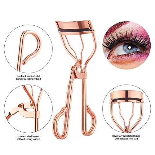 - Special Design: the lash curling tool is designed into rose golden stainless steel frame without spring loaded, look beautiful and luxurious; double lined anti-slid handle with finger hole and flawlessly calibrated hinge, easy handle, easy use!