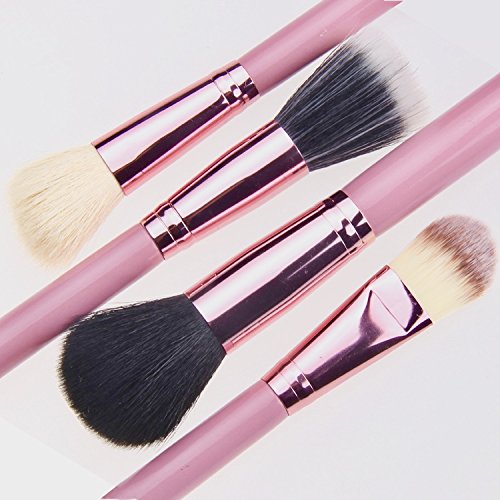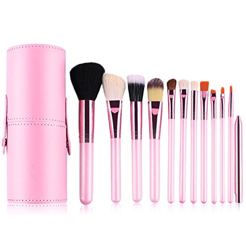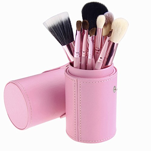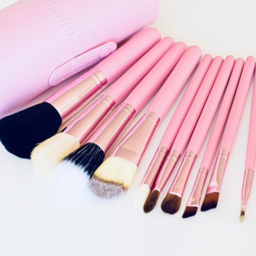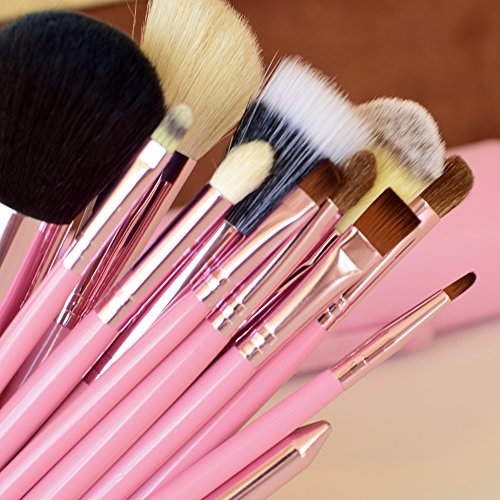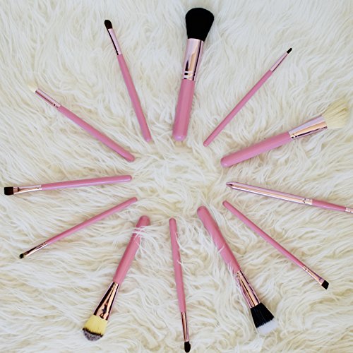 Eugi's Makeup Brush Set 12 PCS Professional Brushes and Leather Holder. Luxury Valentine's Day Gifts For Her. Face & Eye Foundation Powder Airbrush Blush Concealer Brush Pink Travel Case