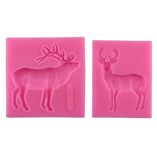 Mujiang 3D Silicone Stag Fondant Molds Christmas Deer Elk Cake Decorating Tools, Set of 2