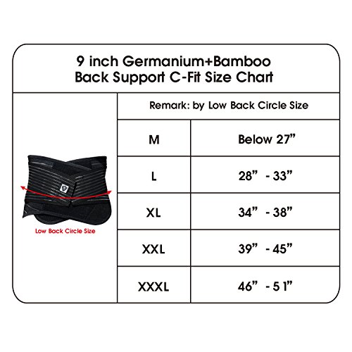 Vital Salveo-Adjustable Germanium and Bamboo Charcoal Lower Back Support Relieve Back Pain, Sciatica C-Fit (XX-Large)