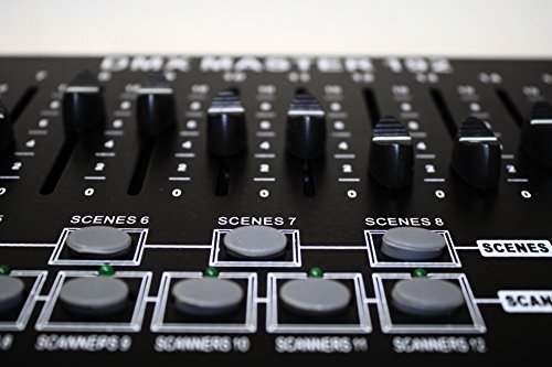 General Overview: The Controller is a universal intelligent lighting controller. It allows the control of 12 fixtures composed of 16 channels each and up to 240 programmable scenes. Six chase banks can contain up to 240 steps composed of the saved scenes and in any order. Programs can be triggered by music, midi,automatically or manually. All chases can be executed at the same time. On the surface you will find various programming tools such as 16 universal channel sliders, quick access scanner and scene buttons, and an LED display indicator for easier navigation of controls and menu functions.