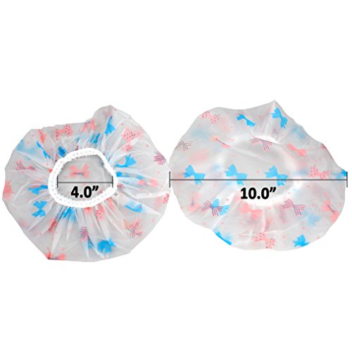 - Amariver Eco-Friendly Shower cap size: the bath hair caps' tiled diameter is 25.4 cm, with stretchable elastic band, easy to wear and remove. Suitable for different head circumference, one size fits most people. PEVA shower cap is 100% waterproof so that your hair never will get wet