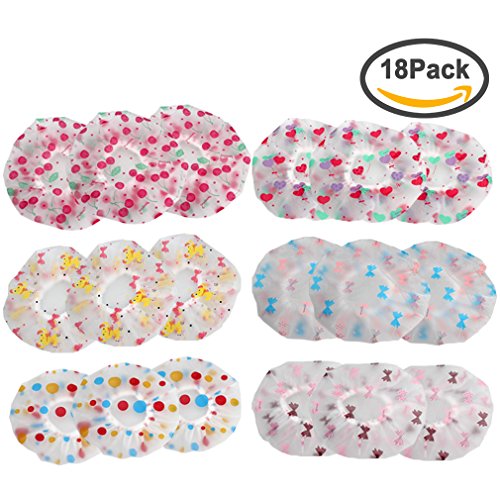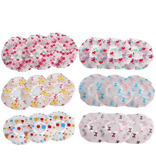 - Fashionable patterns shower cap: 6 various patterns for your choices, coffee bowknots, blue bowknots, cherries, yellow bear, heart balloon and colorful dots, select one and enjoy your shower time. Keep your hair dry and look fashionable with this cute cap. Package includes 18 pack shower caps in total, each patterns for 3