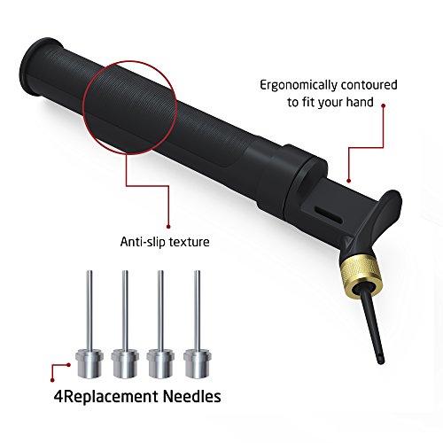 PUMPS TWICE AS FAST: Ezire Dual Action Inflator Portable Fast Push and Pull Ball Pump Best for Basketball, Soccer, Football?Volleyball, Rugby. Why You Choose Ezire Ball Pump? - Soft needle plug that effectively prevents bending. -Four free extra USA standard needles so you don't need to worry about losing one. - Dual-action mechanism that makes pumping much easier and faster. - Made quality materials to guarantee durability. Features: Dimension:1.1*1.1*7.2inch Product Weight:1.4oz Color:Black Package Include: 1*Ball Pump 0 |