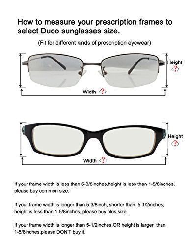 How to measure your prescription frames for DUCO sunglasses: 1- Measure the widest part of your prescription frames left to right, this is the "width". Next measure the height of the lens with frame included.