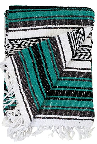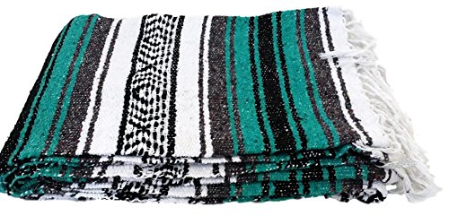 GREEN / TEAL / TURQUOISE HANDWOVEN MEXICAN BLANKET - GREAT FOR THE BEACH AND YOGA!