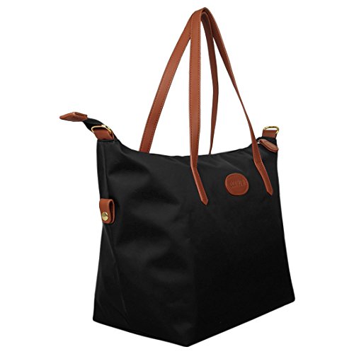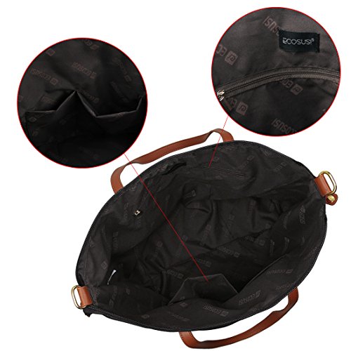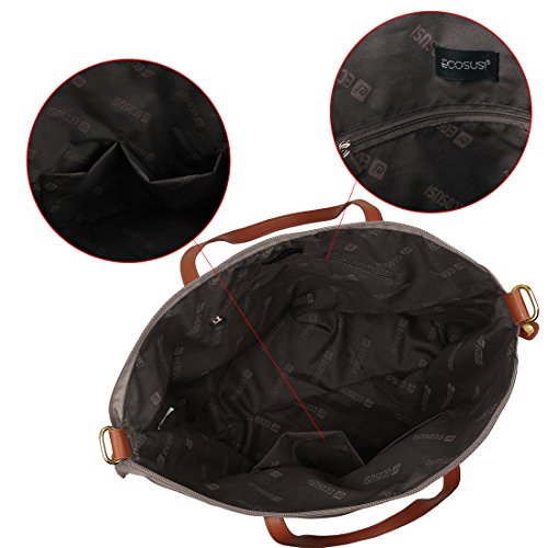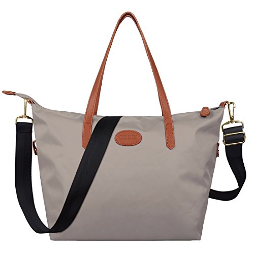 -. Brand : ECOSUSI -. Color : beige -. Department : womens -. Feature : High quality waterproof nylon with Pu handle / Features a zippered compartments, two interior multi-function pockets and a pocket with zipper to organize your essentials / Perfectly fits iPads, tables and any daily accessories, fit A4 paper / Approximate Size: L 18" x W 7" x H 12" / Ideal for an everyday purse or pool type bag -. ProductGroup : Apparel -. ProductTypeName : LAGE -. Title : ECOSUSI Women Fashion Nylon Tote Shoulder Beach Bag