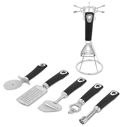-. Title : Internet's Best 6 Piece Kitchen Gadget Set with Black Handles | Stainless Steel Bottle Opener, Pizza Cutter, Cheese Slicer, Grater, Apple Corer and Peeler | Kitchen Utensil Hanging Rack Organizer