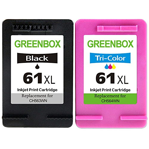 GREENBOX Remanufactured Ink Cartridges Replacement for HP 61 61 XL, 2 Pack (1 Black, 1 Color) CH563WN CH564WN