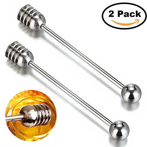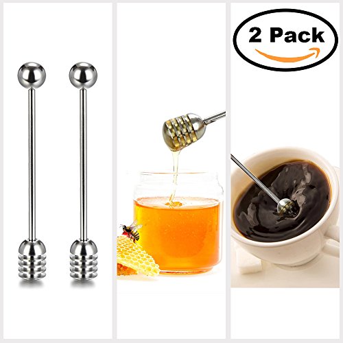Stainless Steel Honey Dipper 304,Simple Metal Honey Spoon Dipper Stirrer,Honey Pot with Dipper(2 pack)