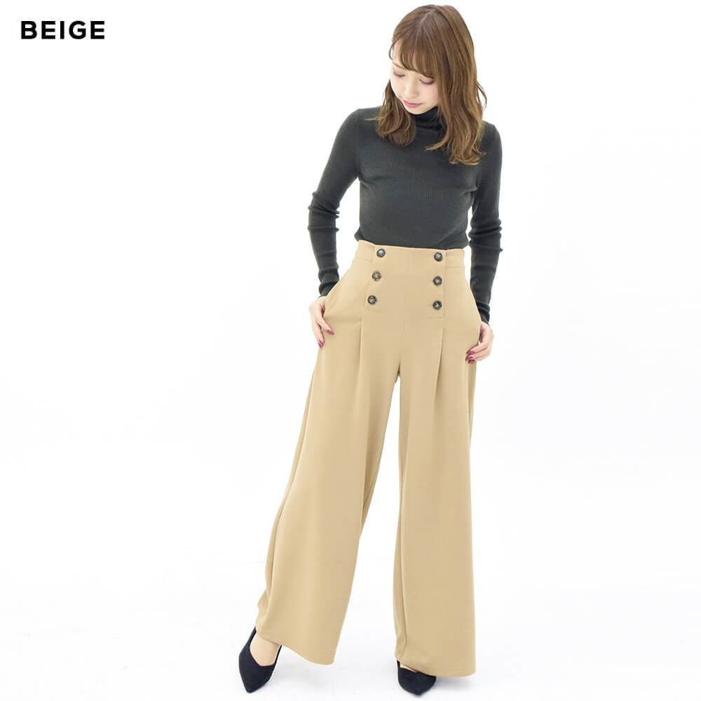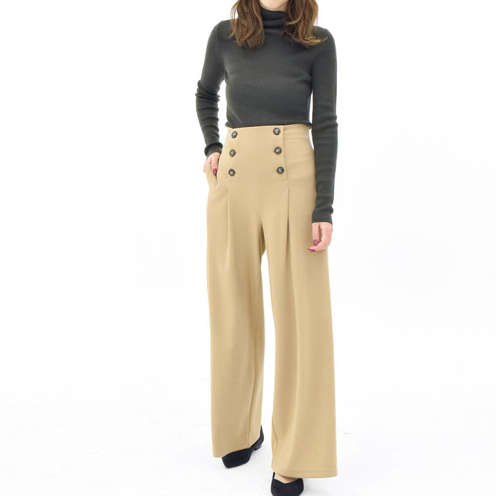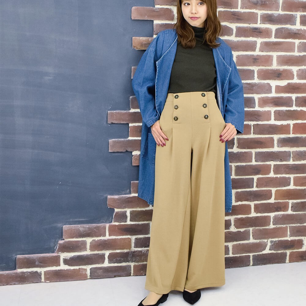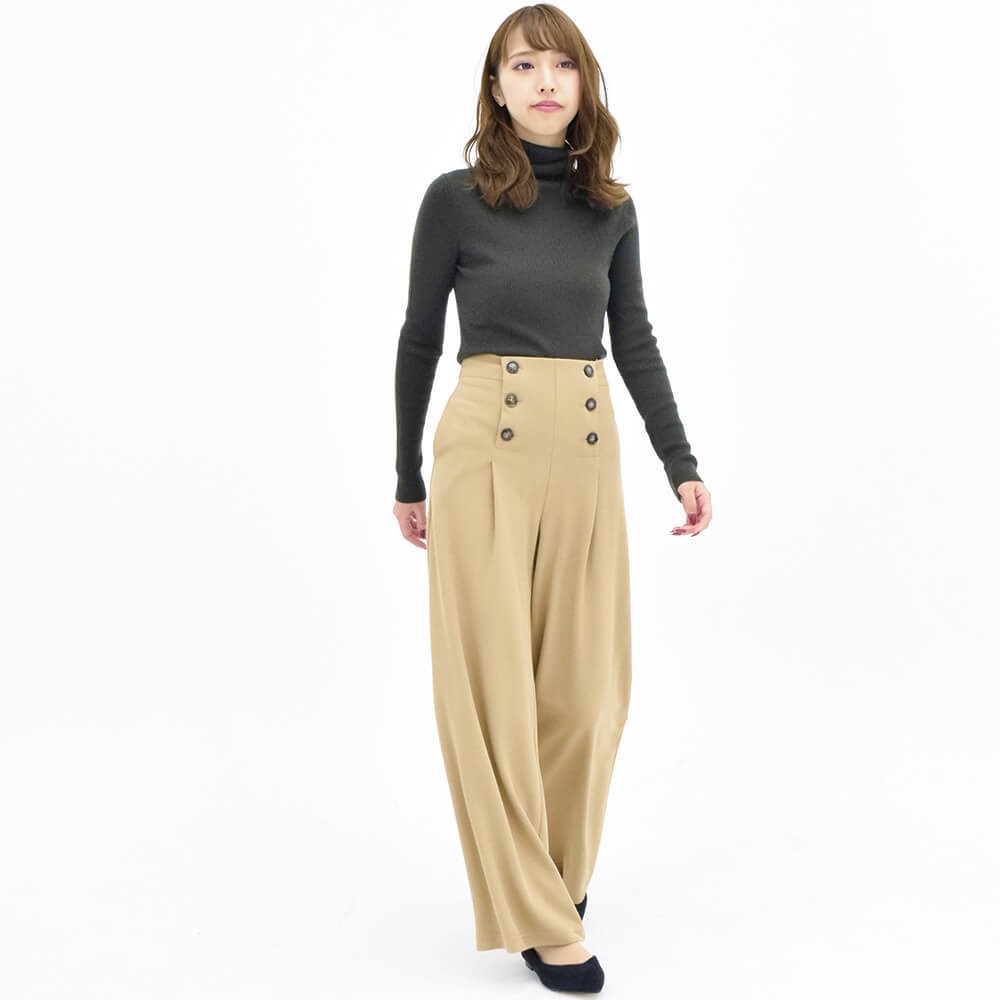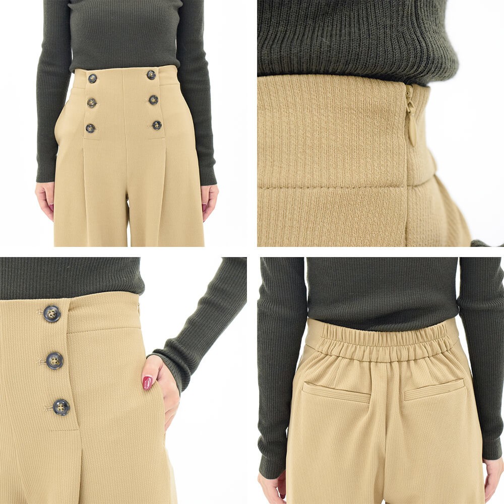 縦リブの入ったリラックスムードあふれるワイドパンツ。
