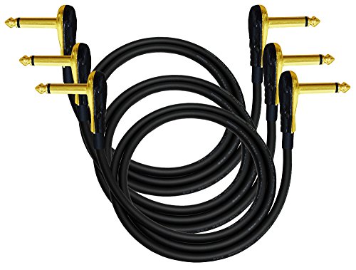 3 Units - Mogami 2524 - 3 Foot - Guitar Bass Effects Instrument, Patch Cable with Premium Gold Plated ¼ Inch (6.35mm) Low-Profile, Right Angled Pancake type TS Connectors