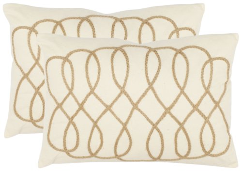 Safavieh Pillow Collection 13 by 19-Inch, Frieza Pillow White and Wheat (Set of 2)