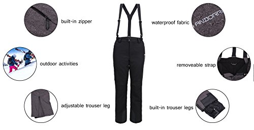 These high-performance multi-layered ski pants feature high-tech lightweight insulation and a heat-trapping multilayer heat retention system to seal in body heat while remaining breathable, keeping you warm and dry all day. Moisture wicking inner fabric prevents perspiration from accumulating on the skin during even the most strenuous activity. Tough ballistic shell offers flexibility and comfort while remaining light. Critical seams are reinforced, wind resistant, and water resistant. With tough, weathertight construction and an ergonomic fit, Andorra's ski pants provide the perfect amount of warmth, comfort and protection for any activity in cold and wet conditions. 0