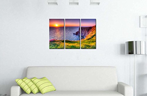 -. Title : 3 Pieces Modern Canvas Painting Wall Art The Picture For Home Decoration Destination Cliffs Of Moher Beach At Sunset Doolin County Clare Ireland Seascape Sunrise P.R.Int On Canvas Giclee Artwork For Wall Decor