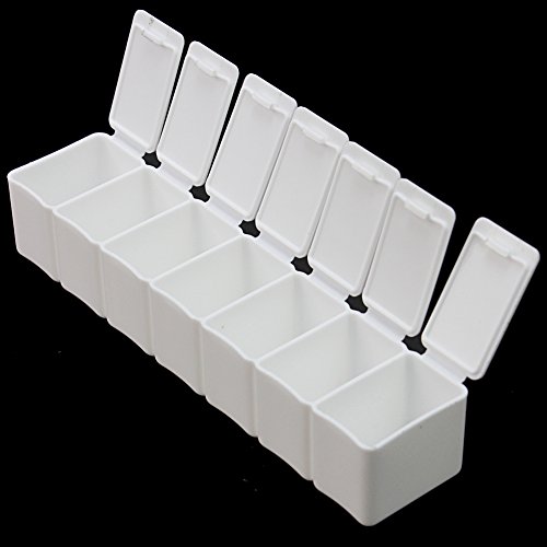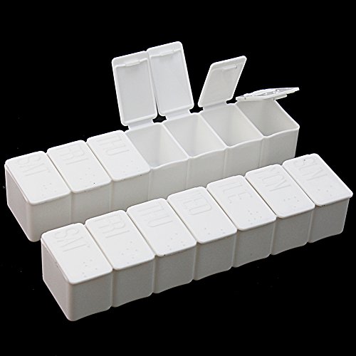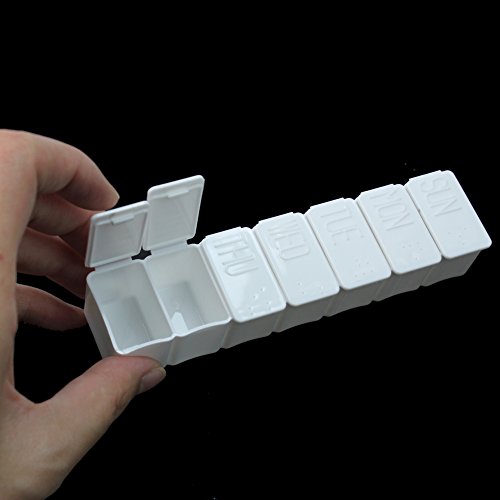 - Feature : Designed with 7 small separate boxes (non-removable). / Great way to organize your medication / Can also be used for those who take daily vitamins / Easily visible lettering to indicate day of the week, as well as raised braille lettering / Material: PP