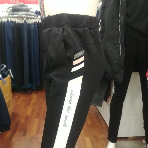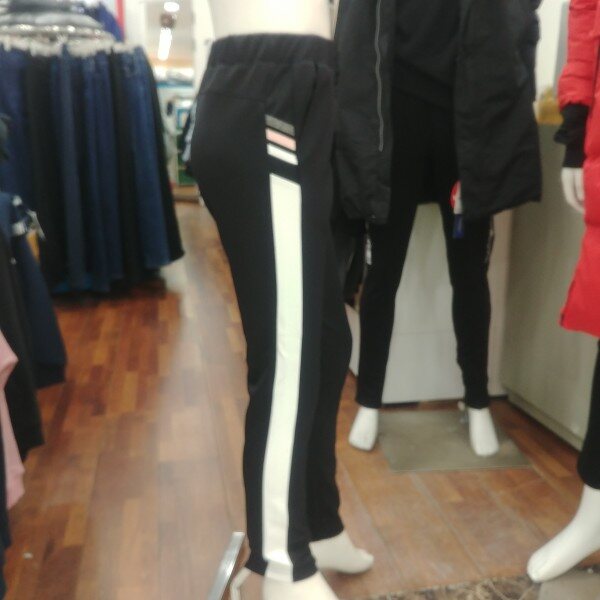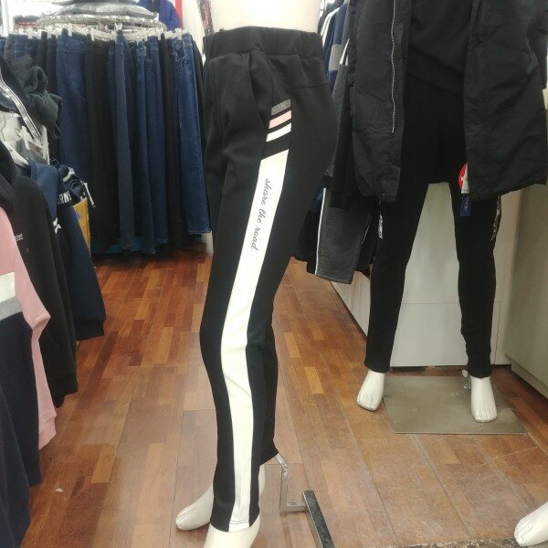 여학생 전용 트레이닝 바지입니다.스키니핏으로 이쁩니다.블랙 바탕에 화이트 포인트 트랙이 돋보입니다.