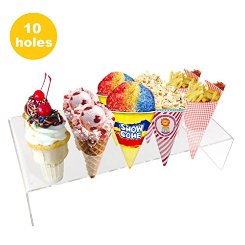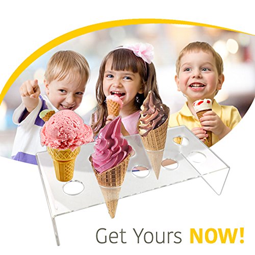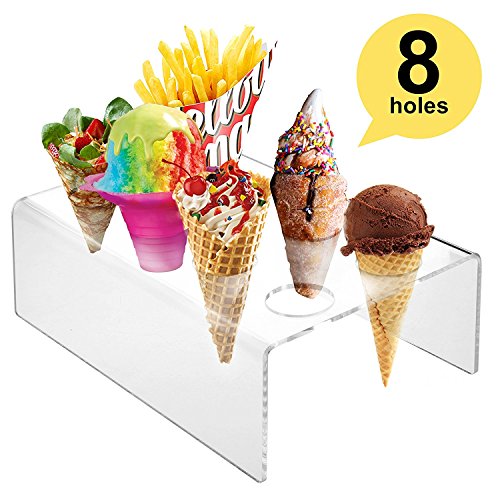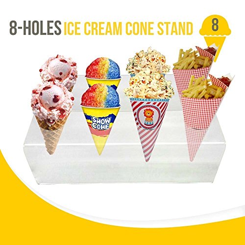 Ice Cone Holder | Deluxe 8 Holes Transparent Stand Holder To Display Ice Cream Cone Popcorn Cupcake Candy Snow Cone French Fries Sweets Savory for Birthday Party | Food Grade Clear Acrylic Material