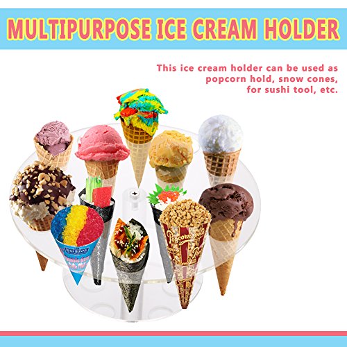 Ice Cone Holder | Amazing Transparent Lightweight Portable 10 Hole Ice Cream Cone Stand Display | Safe Durable Washable Food Grade BPA-Free Acrylic Material | 573.3