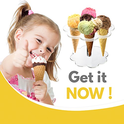 Ice Cone Holder | Deluxe 6 Holes Food Grade Acrylic Transparent Stand Holder to Display Ice Cream Cone Popcorn Cupcake Candy Cone Snow Cone French Fries Sweets Savory | Food Grade Acrylic Material