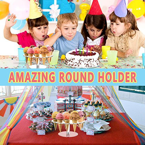 Ice Cone Holder | Amazing 16 Holes Round Transparent Stand Holder to Display Ice Cream Cone Popcorn Cupcake Candy Cone Snow Cone French Fries Sweets Savory | Food Grade Acrylic Material