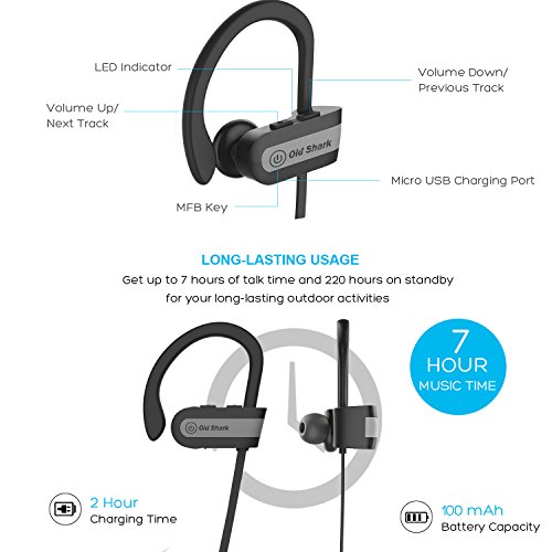 OldShark Bluetooth Headphones Sport Wireless Earbuds with Mic IPX6 Sweatproof Earphones, Flexible Ear Hooks, Bluetooth 4.1, 6 Hours Play Time, for Running Workout and Gym