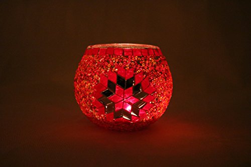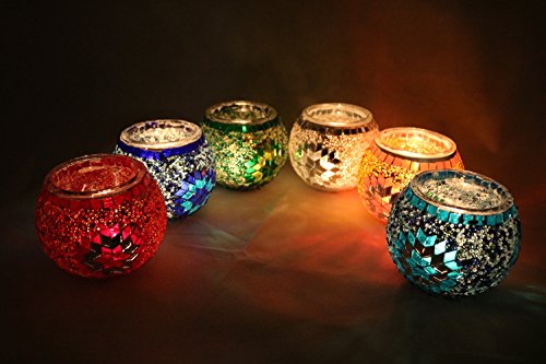 Studio : Alissar International Publisher : Alissar International Binding : Kitchen Product Description Handmade candle holder with small glass pieces assembled in mosaic style and held in place by gypsum around a clear glass cylinder shape. Place a tea light candle inside to add a romantic ambiance to your place. As one of the most ancient decorative arts, mosaic craftsmanship originated in ancient Babylon and was widely prevalent in ancient Rome. Materials: mosaic blown glass, glass and glass beads. Dimensions: 4"/10 cm x 4"/10 cm Net weight: 15 oz /425 g 0