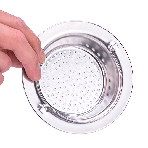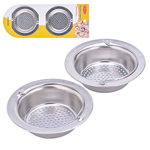 2PCS Kitchen Sink Strainer With Handle Stainless Steel Garbage Portable Strainer Basket By HOXHA, Large Wide Rim 4.3" Diameter