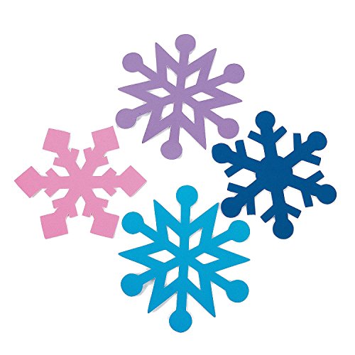 - Our jumbo-sized foam snowflakes come in 4 assorted designs. (2 dozen per unit) 8” x 8 3/8” Accessories sold separately.