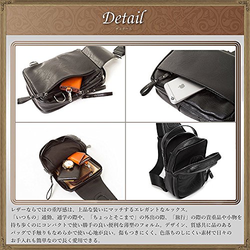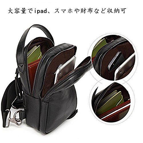 -. Title : ArnoLucy ボディバッグ ワン ショルダー 斜めがけ バッグ メンズ 大容量 レザー 防水 a4 iPad 収納可 人気 日常 通勤通学