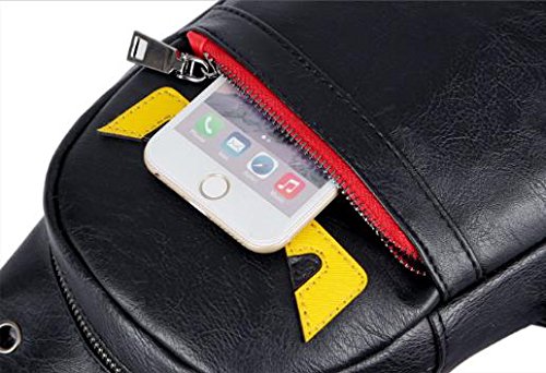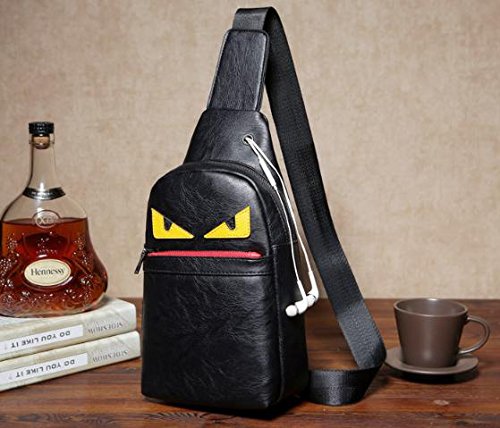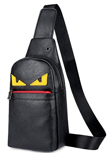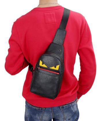 -. Feature : 若者に人気のコミカルなデザインのボディバッグです。 / 便利なイヤホン穴がついており、音楽を聴きながら外出をお楽しみいただけます。 / お手入れが簡単なPUレザー素材です。 / 【サイズ】タテ:30cm、ヨコ:17cm、マチ:7cm / 【メイン素材】PUレザー