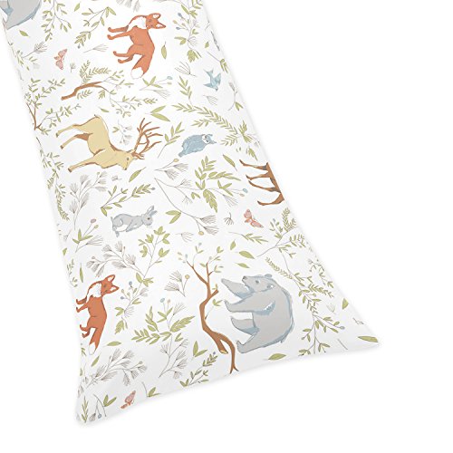 Blue, Grey and White Woodland Deer Fox Bear Animal Toile Collection Full Length Double Zippered Body Pillow Case Cover