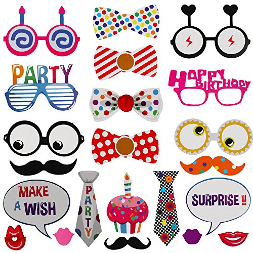- PERFECT FOR ANY CROWD: Photo booth props are fun Birthday party supplies for adults and kids - everyone will love the funny faces on these Birthday Party Decorations Party photo booth props. Take entertaining and shareable party photos of your friends and family while making memories with these funny photo booth props.