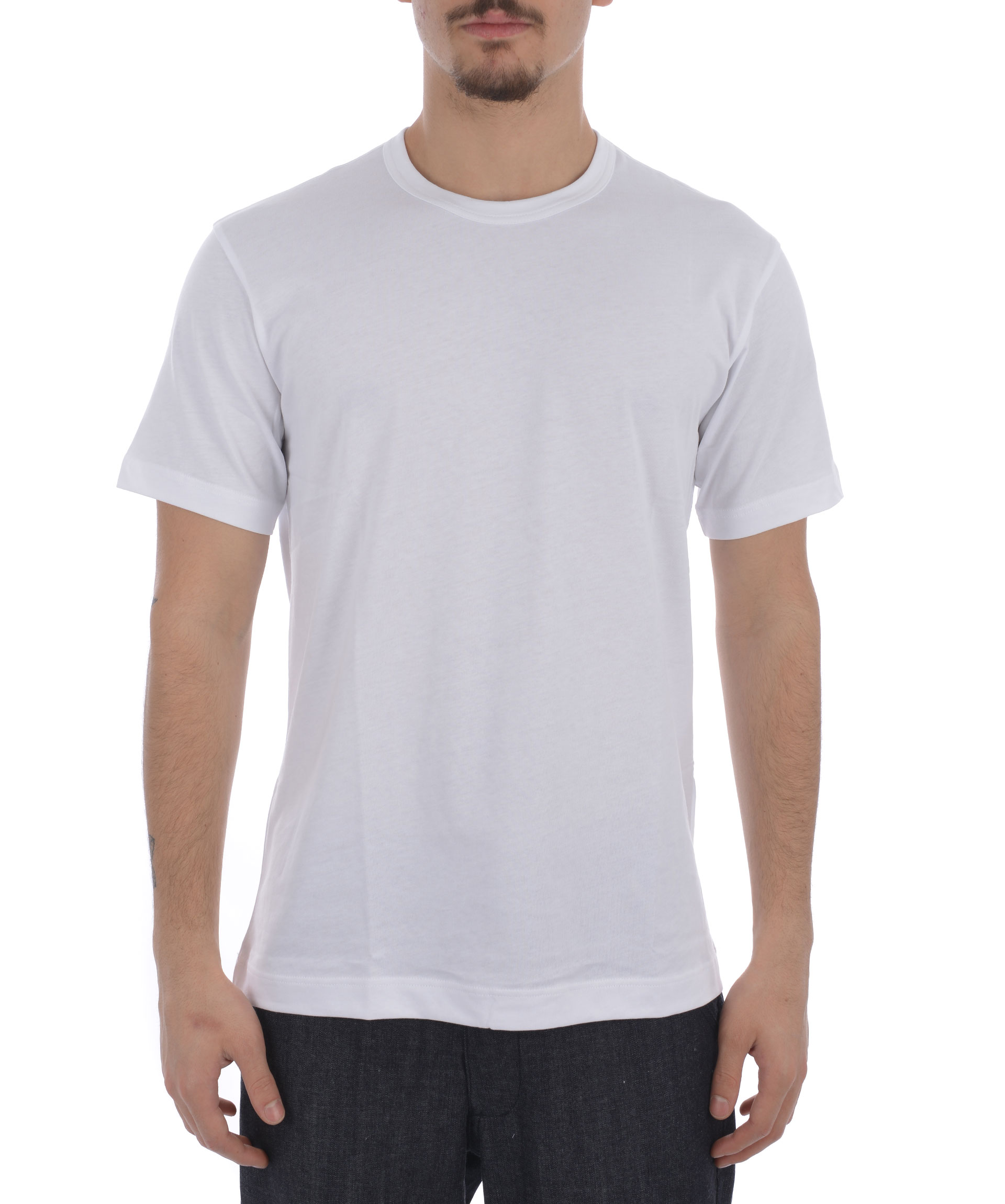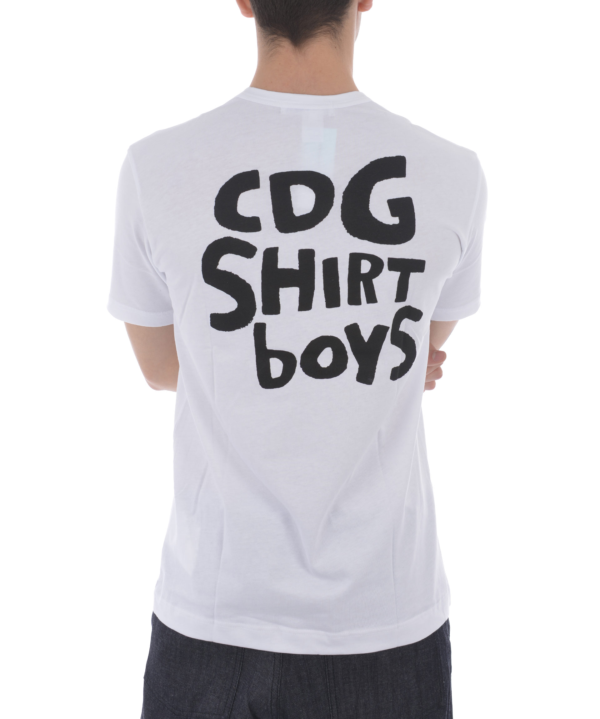 Back Logo Print T-shirt from Comme Des Garçons Shirt: White Back Logo Print T-shirt with round neck, short sleeves and straight hem.